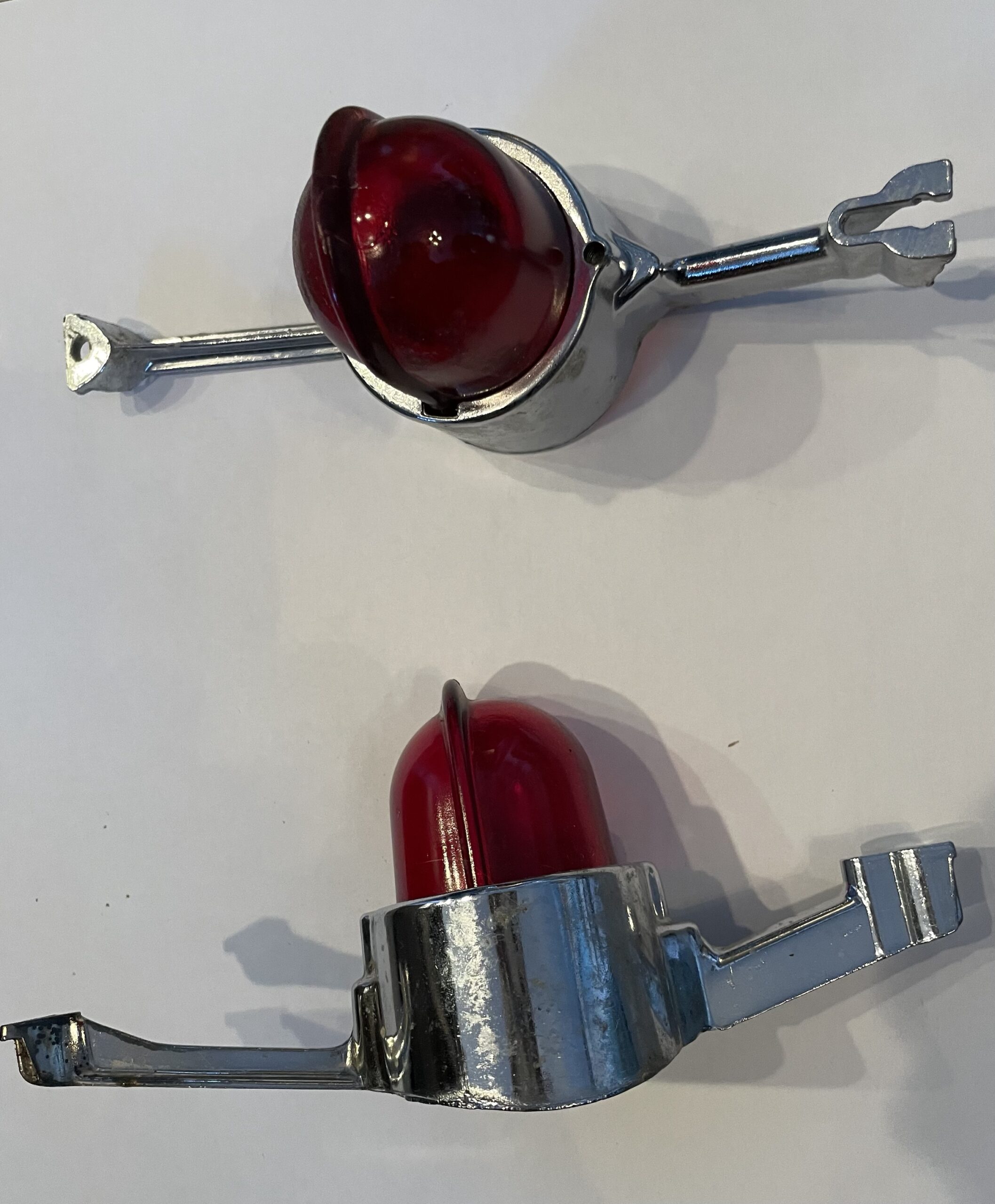 These are part of the tail light. Made of glass, left and right. Unsure of what they came off.